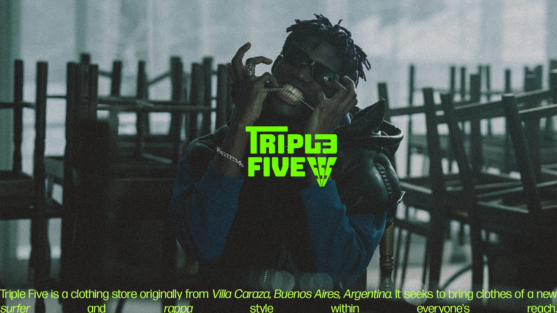 Triple Five is a clothing store originally from Villa Caraza, Buenos Aires, Argentina. It seeks to bring clothes of a new surfer and rappa style within everyone's reach.